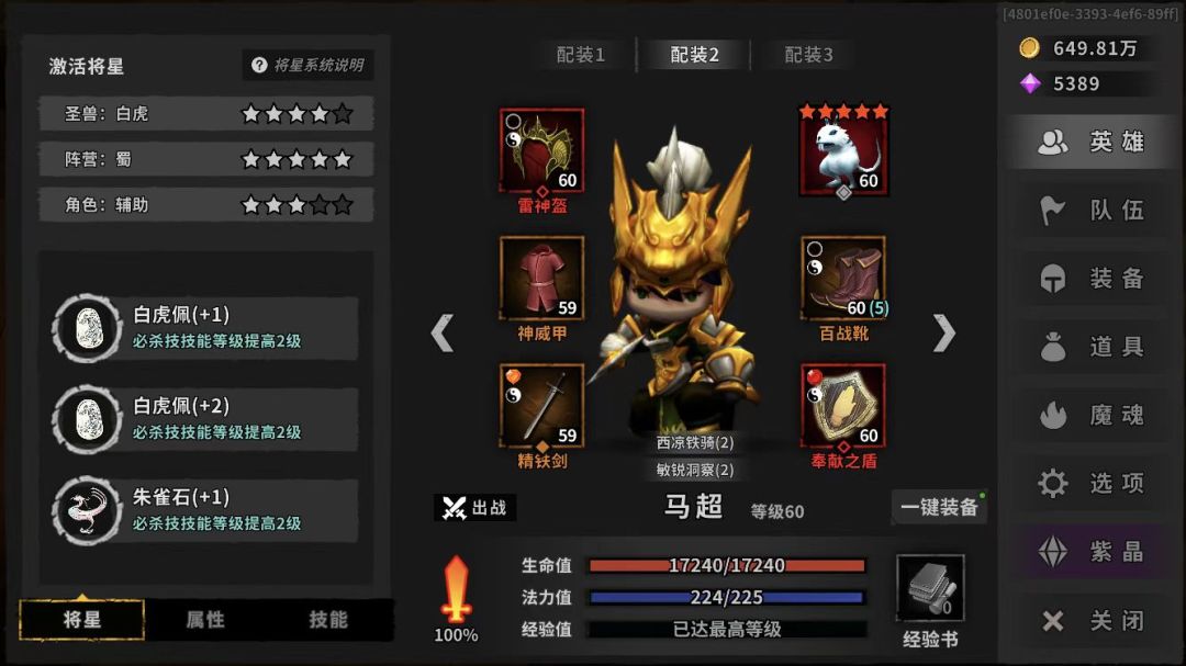 今天我们再来聊一聊最通用的辅助,秒怒马超。 首先是速度,秒怒马要做到先手所有怪(140层)开大拉条,主兔子魂速度必须到1.8,出手时间是0.24秒。主龙母魂2.4速度也只能0.39秒出手,所以秒怒马超魔魂几乎是不能动的,主兔子杂龙母火神3火球。套装选择2洞察2专属。专属加速0.2魂珠加速0.1,一条大词条加速0.2,装备加速0.2(武器0.1,防具0.1)基础速度1.1,正好1.8. 怒气方面魔魂3战前,加装备6回怒刚好,多了浪费。由于马超副手没回怒,装备上有一件可以不带回怒,选择加速度和暴击的防具,(秘法头环,雷神头,虚无长袍,遗世长袍),我这里由于有太古雷神所以选它,实际上太古虚无,遗世更好,因为帽子选带怒气帽子可以多个防闪,这样武器上就可以不带防闪。马超的武器是比较难选的,加速暴击怒气是刚需,帽子如果不带防闪 防3也是刚需,这就4词条了,如果多个金币,胜利回蓝,减蓝耗,5词条是最好了。 这套马超技能设定是422222,进场至少预留44气,没气就撤退凹一下,这是基本操作了。2技能攻击4次,3火球3次,马超暴击率是90+龙母魂5,所以不满气概率是3除7再除20,2.1%(数学很差,算错了勿怪)。 回蓝方面,胜利回蓝要42.667%,才能抵消一回合2技能的消耗(24蓝),所以胜利回蓝至少要3条,这是建立在你庞统能一回合秒怪,当然你如果武器副手上有2条减蓝耗可以抵消一条胜利回蓝。 之所以要胜利回蓝 是要保证马超将星全部加大招,不然你牺牲一个暴击大词条,换成暴击回蓝,每次暴击能回5蓝7次攻击回35,什么都解决了,回蓝小词条可以换金币。这也是为了庞统用极限法鞋词条,不然刘备可以3无限2.4速度每次两动回蓝两次。 马超将星+大招6,其实输出138层,只给庞统多加了200w白字伤害,看不上的同学完全可以将星加暴击,大词条改一条暴击回蓝,但是庞统极限法鞋提高10%输出最好还是用上。 本人的装备,盾牌大家别学,典型的反面教材,正确的词条应该是暴击 胜利回蓝。减少反弹50,金币 减蓝耗3选2最多4词条。