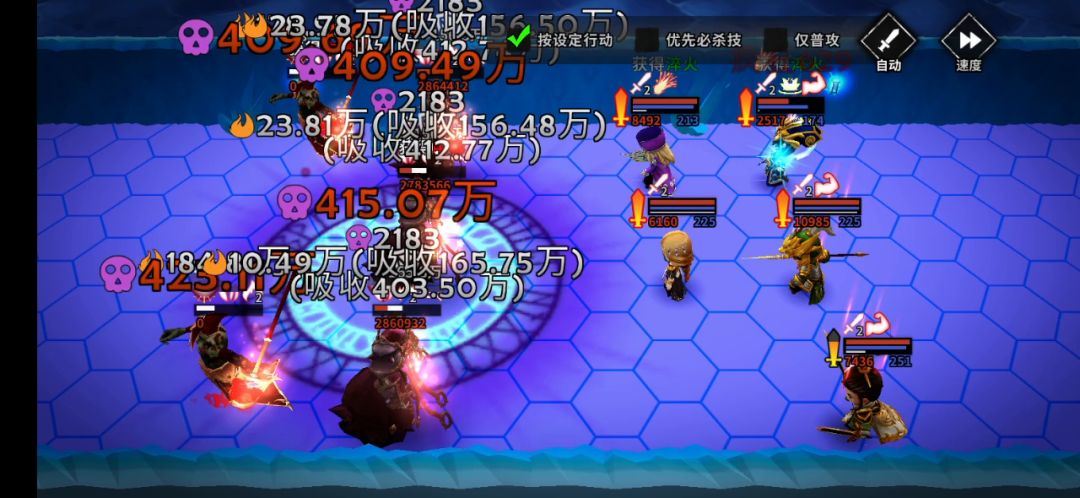 火诸葛,主魂不用说,装备去看精华大佬的帖子,我这纯粹是凑套装,萌新资源不足,小词条洗一条击杀回蓝,红字400w+。 刘备,队长,纯角斗士,装备地图攻击,金币套,要求速度比诸葛快0.1,一直2技能就完事。 甄姬,工具人,金币套,魂带纯回蓝,四星就够,第五星随便打个什么都行,我是懒得打。必须要有两件套,这是重点。不需要速度,不用出手。 夏侯渊,工具人,装备金币套,速度要求比诸葛快,魂带纯狼,给诸葛凑暴