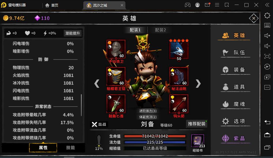 阵容组成:前排诸葛 ,刘备,后排马超,周瑜,典韦 站位:刘备站前排中间,后排周瑜站中间,典韦站诸葛后面。 五个人装备推荐: 解释这两个人装备原因:刘备只要肉就行,装备90减伤,两条防止流血,头盔抗性,词条不动三个精英伤加上300抗性词条,攻速比诸葛快就可以,实际测试小怪打不掉血反而回血,刘备被动减伤且激励回血,魔魂角斗士或者角斗士杂狼或者纯狼,看个人需求。马超,技能设置41224,秒怒加后排盾,怼