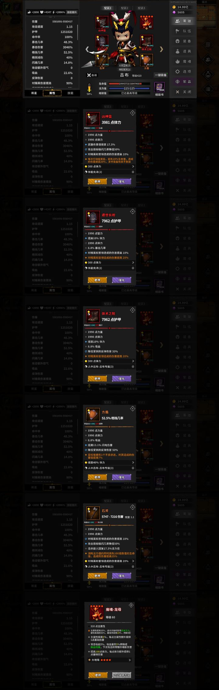 诸葛:1.2速 狂怒3件套+专属 主副手攻怒5 8攻怒 70暴击 防闪2 剩下凑异常词条 将星:2级大招,必要!必要!必要! 不然周瑜boss不能2动技能:43小怪boss通用,单怪不设置魔魂:90兔子+燃烧魂为了叠异常,或者90兔子+回蓝魂(缺蓝推荐) 马超:1.2速 狂怒3件套+敏锐 主副手攻怒5 8攻怒 80暴击 防闪2技能:4222小怪boss通用,单怪不设置将星:大招或暴