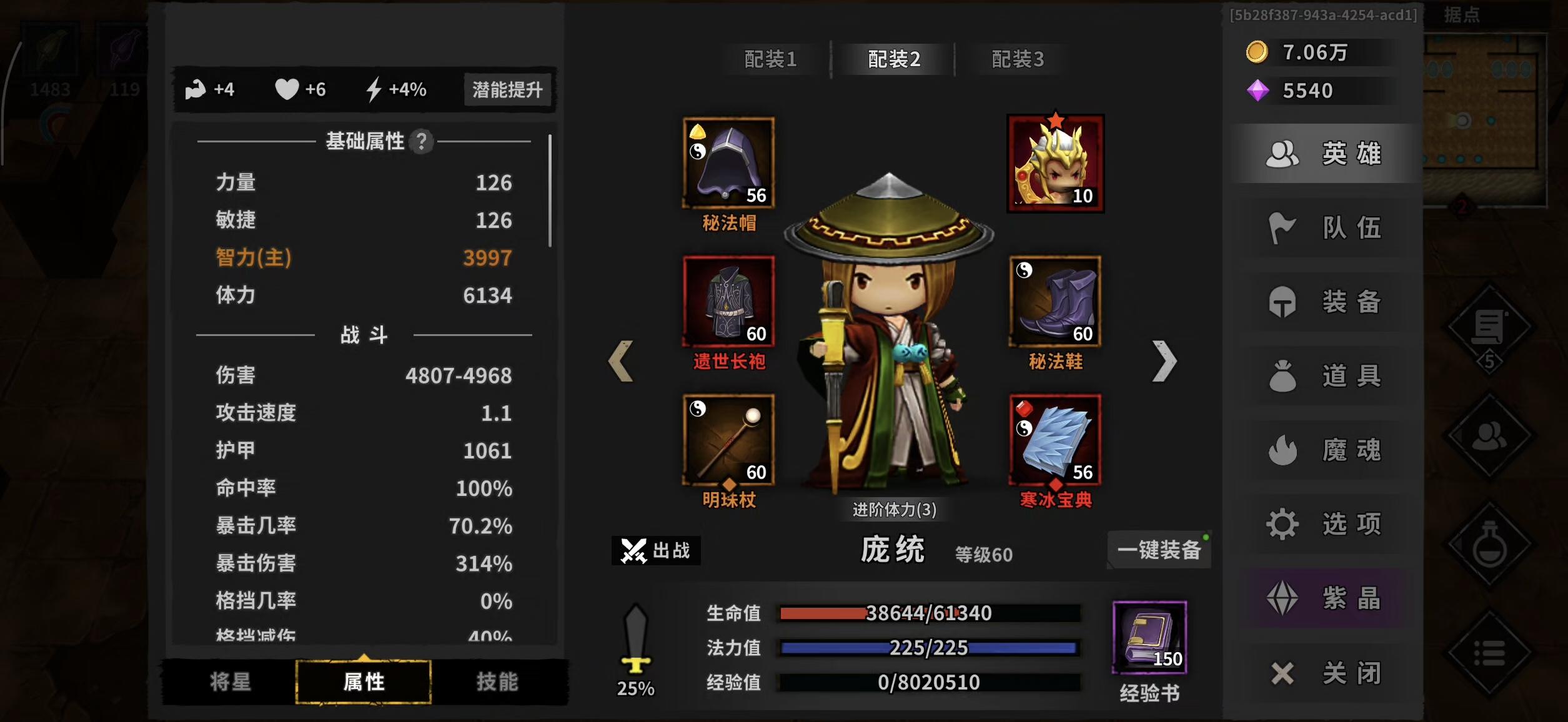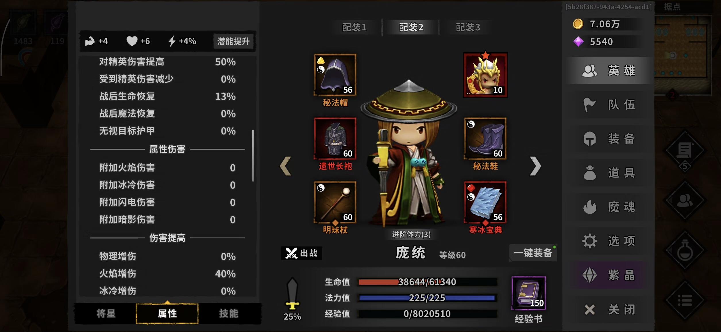 7.22入坑,8.6毕业,潜谈心得,走了很多弯路。40之前可以用诸葛速刷,刷到天心装备开始换阵容。40图之前有冰龙和领主,遇到冰龙打不过可以返回首页刷新BOSS诸葛亮主要暴击爆伤最大伤害暗影伤害为主,主手攻击力最大,副手最大伤害加百分之40,两个爆伤140,一个疯狂面具。诸葛亮主魔魂暗影蜘蛛,我为了提属性带的恶魔之王。我直接从诸葛亮转的异常天心流,跳过了黄忠。阵容是四保一,马超黄金套主加的