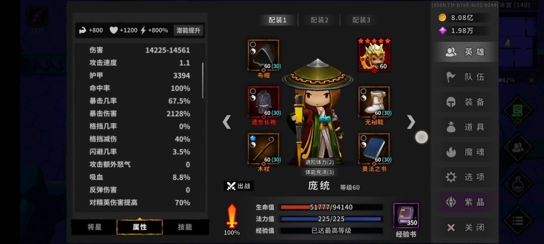 我刚把庞统搞到90%暴击率,主手500暴击,副手暴击五怒,然后攻击一万四,刚把龙母打过,世界石来了个七亿血的炼魂尸,我去