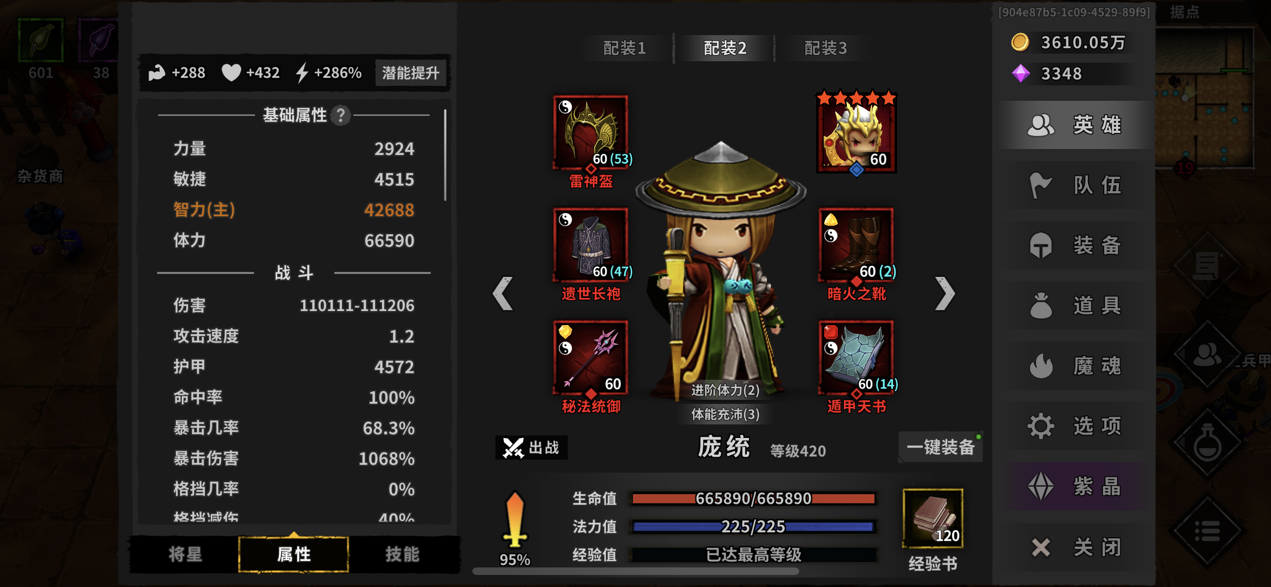 7.22入坑,8.6毕业,潜谈心得,走了很多弯路。40之前可以用诸葛速刷,刷到天心装备开始换阵容。40图之前有冰龙和领主,遇到冰龙打不过可以返回首页刷新BOSS诸葛亮主要暴击爆伤最大伤害暗影伤害为主,主手攻击力最大,副手最大伤害加百分之40,两个爆伤140,一个疯狂面具。诸葛亮主魔魂暗影蜘蛛,我为了提属性带的恶魔之王。我直接从诸葛亮转的异常天心流,跳过了黄忠。阵容是四保一,马超黄金套主加的