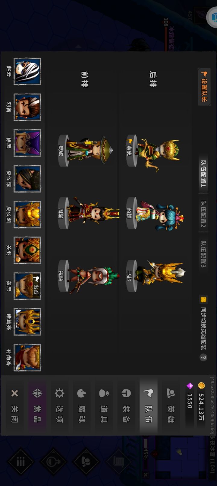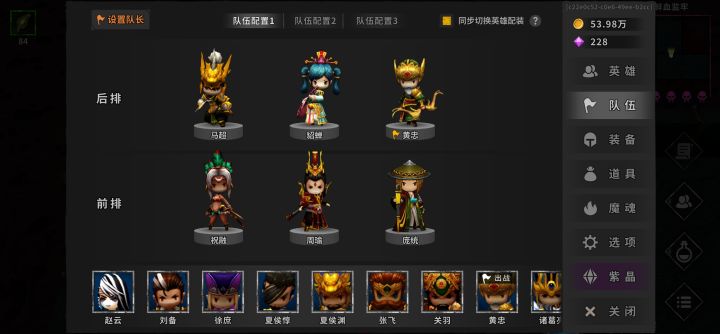 本攻略涉及附魔诸葛,速怒马超和肉装刘备装备详解。众所周知,由于诸葛的上限问题,能够带队秒到110+层,再往上就是各种刮痧了。然后再往上爬塔的最优国家队则是天心带队(4个工具人:刘备,马超,夏侯渊,孙尚香)。本攻略就是在甜心国家队的基础上再提速。首先,如何提速?当然是增加一个输出点啦。鉴于本方人员的特点,刷图小能手孔明先生当仁不让继续加入往上爬的队伍。首先上阵容。考虑到国家队中香香过