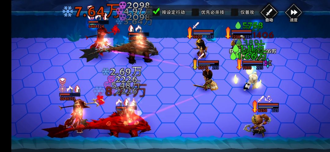 基本解决了罚站的问题,这套阵容打不过boss,打小怪也很慢,是伤害不够吗