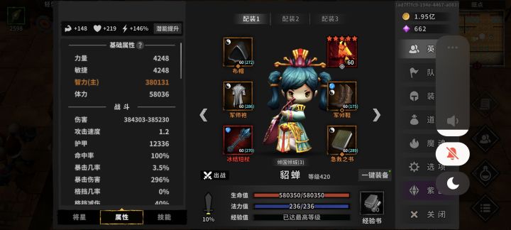这游戏核心就是魔魂和貂蝉,没有这两个就没有什么伤害了,做好魔魂无脑堆貂蝉智力轻松通关,就是龙母还需要提高数值,剩下就没什么好玩了,完结散花