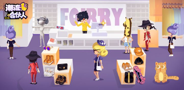游戏整体以潮流街头文化为主要风格,Q版的人物造型,海量的潮牌商品、停不下来的魔性经营,让你体验到独具潮流元素的创意游戏!