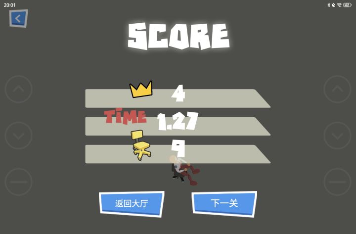 于是第三层变成了长长的上坡。俺的腿认为这太憨了并且快速的抖动着冲上斜坡。然而我们可恶的老板竟然在那一头堆上坚硬而轻飘飘的纸箱来阻止我成功上班打卡。哦!天哪!这万恶的资本主义!老板只要发现我没有按时上班,他就会扣我的工资!所以他要用纸箱来阻挡我上班的步伐!这太混蛋了!但是伟大的无产阶级不会退缩,他们会抗争!于是俺一橡皮脑袋撞飞了资本主义恶势力的纸老虎,来表示俺要向罪恶的资本主义抗争到底。