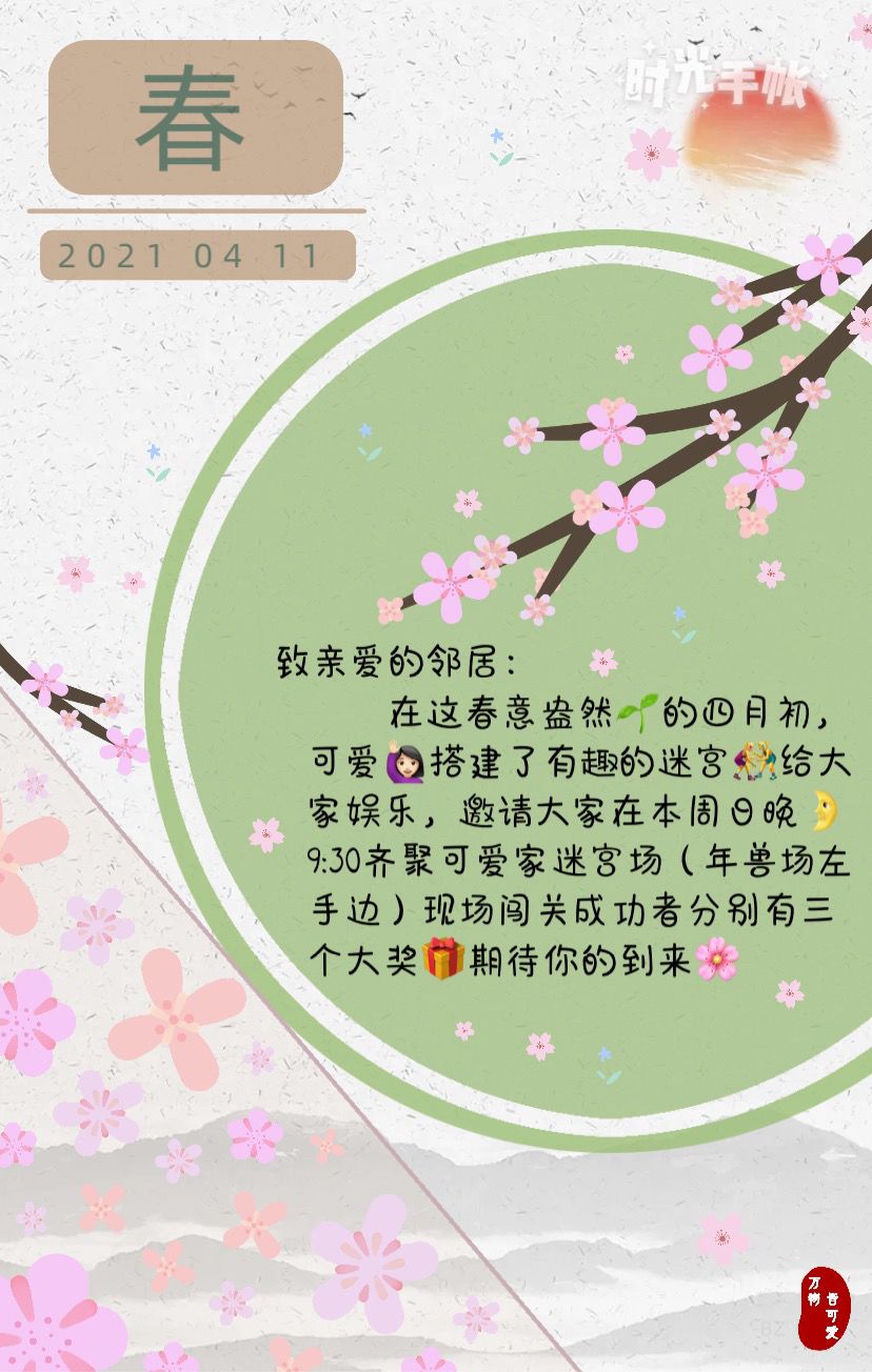 本周发出了邀请—邀请燕京城🏘邻居们参与迷宫大赛 本次比赛冠亚军名次: 🥇阿芽 🥈诗诗 🥉瑞瑞 参与奖ios 拥有500*500家园的大佬孟想 以下是可爱现场发回的报道🎙 以下是颁奖典礼👏🏻👏🏻👏🏻👏🏻 直到很久很久以后....孟想终于找到了 谢谢大家带的礼物 这是我给大家准备的伴手礼🎁 最后的最后送走了三等奖瑞瑞 下次见🌿 很喜欢很喜欢燕京城🏘大家都发展的差不多了平时碰到都少了 就算是游戏里的好友