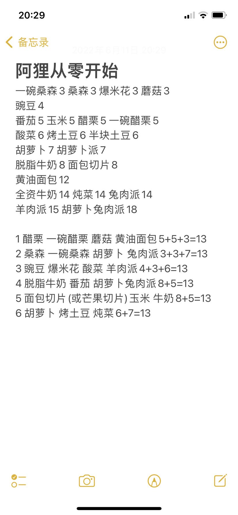 啊哈,我把我叠食食谱转换成图片模式感觉理解程度也没变高上面为固定食物下面为大食物