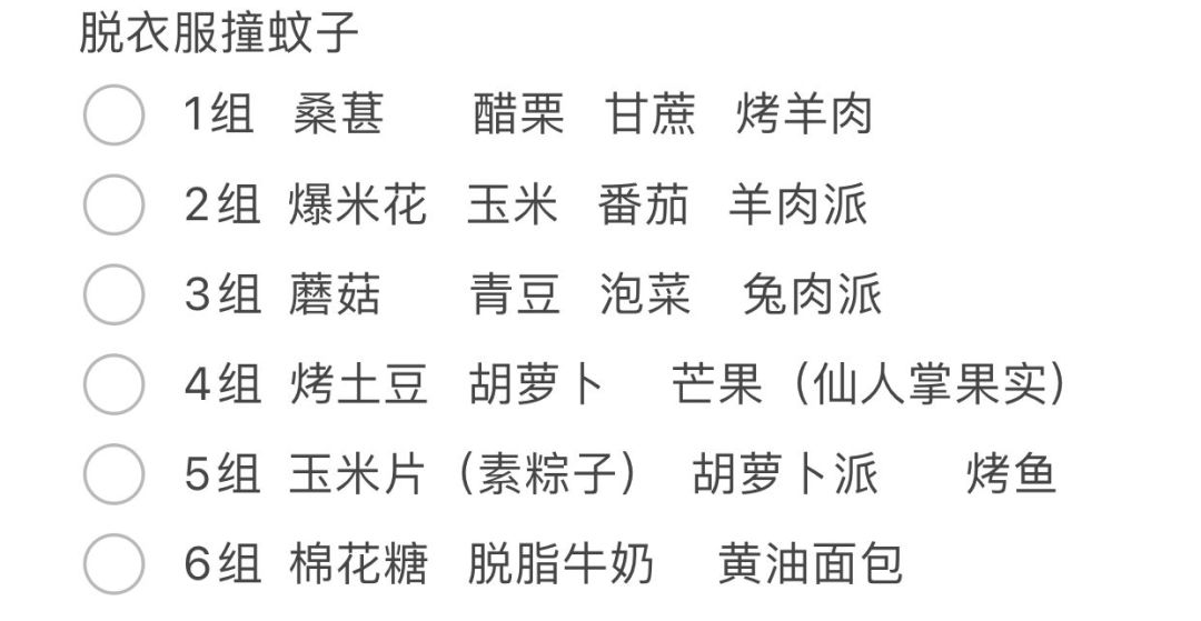 生的一个小孩问怎么叠食,刚好来分享一下我的叠食区。 首先为了减少补充食物的麻烦,保证蚊子附近有泥坑和野生醋栗,叠食顺序(重生后从右向左): 烤羊肉、醋栗派、羊肉派、黄油面包、面包、火鸡、脱脂牛奶、全脂牛奶、芒果(不去热带地区吃其中六到七样就可以撞蚊子了) 撞蚊子后按一二三顺序吃: 一:爆米花、泡菜、青豆、炖菜 二:蘑菇、甘蔗、西红柿、仙人掌 三:醋栗、桑椹、棉花糖、糖人 其中每一组最后一样食物可以
