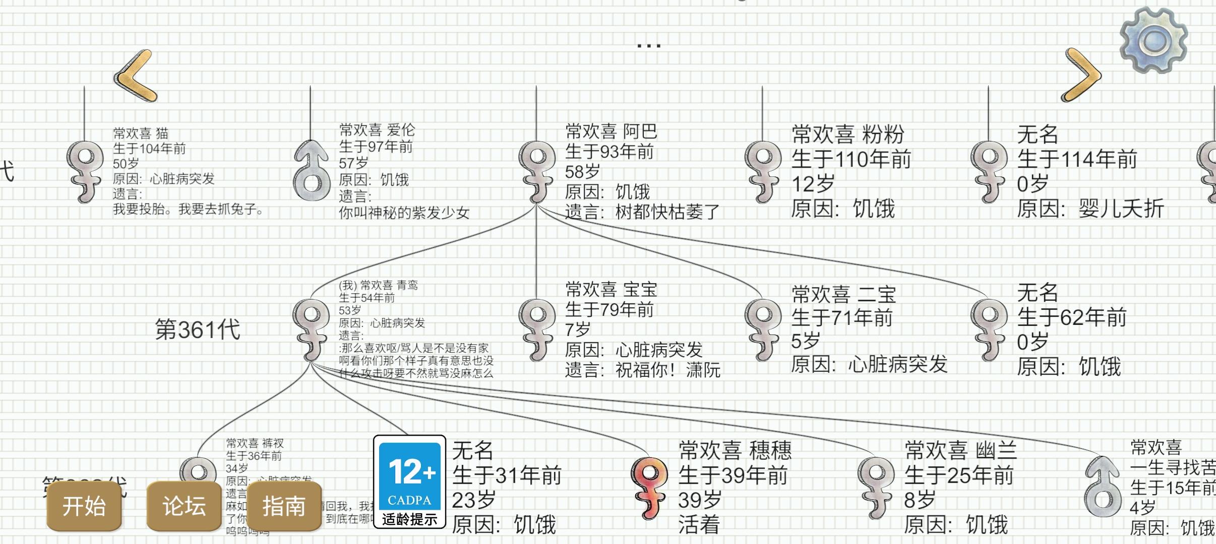昨天做的饺子和鞭炮,今天打年兽,掉两个种子,高高兴兴做了年兽机,然后——我老死了,老死在年兽机里,里面还养了两只年兽果不其然,一重生直接原地断档,被咬死,这次特意死在外面,但没用,骨灰存的还是年兽机里的。吃完花从孤儿院回来,我还是复活在年兽机里,梅开二度也就是说,无论回档多少次,我都只会在两只年兽旁边复活此时就剩一条命(女娲回档),这档无室友,就只