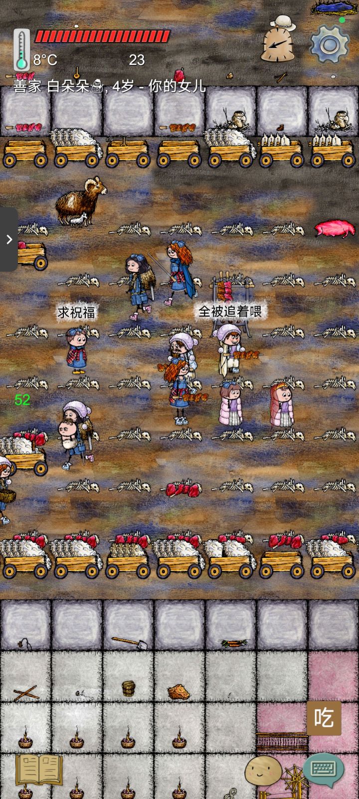 这辈子就生了两个孩子,女鹅牛肉丸子,儿砸橙子。都是很可爱很乘乘的宝宝。我说想做点派,她们也一直在做吃的,我们做了好多派。女鹅有段时间不见了,原来是想做豆卷饼,她跑了好远去找豆种子,说要做给我吃,老了一定要投回来吃饭。真是感动˃ʍ˂我舍不得吃,想把豆饼放进保险柜里。后面橙子也种好了辣椒,我们吃上了烤羊肉,亚米亚米