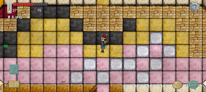 原本想要做那种一个房间占满屏幕,并且能看到房间全貌包括墙壁的那种。。然后本来数着横向是十五格,画图的时候忽略了墙壁直接画的地板,导致做宽了,原本现在左右两边的墙壁没办法同时看到了