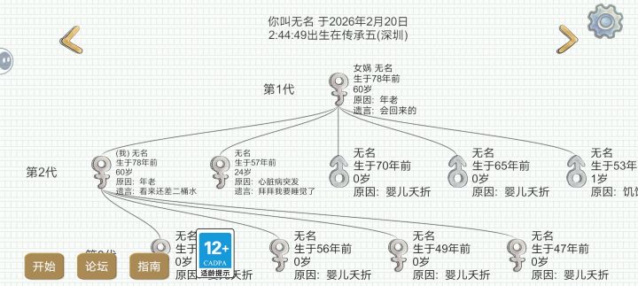 真的诡异没边了,传六单机玩家,一直没养过小孩,孩子出生了都不会抱的,今天开了一把老死后看见家族树上我根本抱都没抱过的儿子还活着,并且已经长到三十多岁了………………本来都没准备再玩了,被吓得又玩了一世,把家里检查完发现没少东西,出去四周转了一圈也没看见除我自己以外其他人为制造的痕迹,最后看家族树这个儿子也是60岁寿终正寝了。真的很诡异啊,所以他到底怎么长大的??有人遇到过类似情况吗?