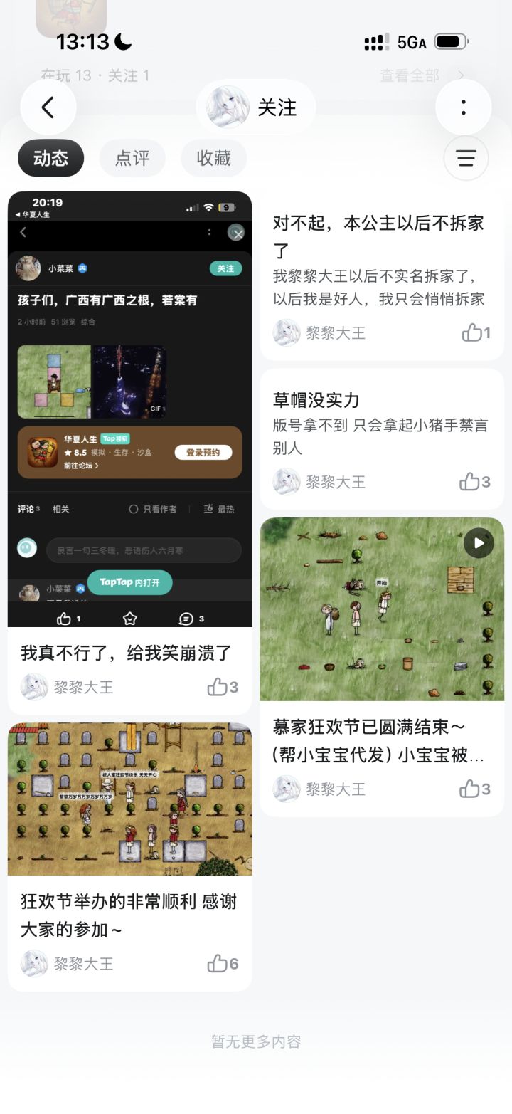 缘分就是这么奇妙吧,我也玩华夏人生,知道了华夏人生有个拆家的裸男,没想到裸男居然和我玩了同样的三款游戏