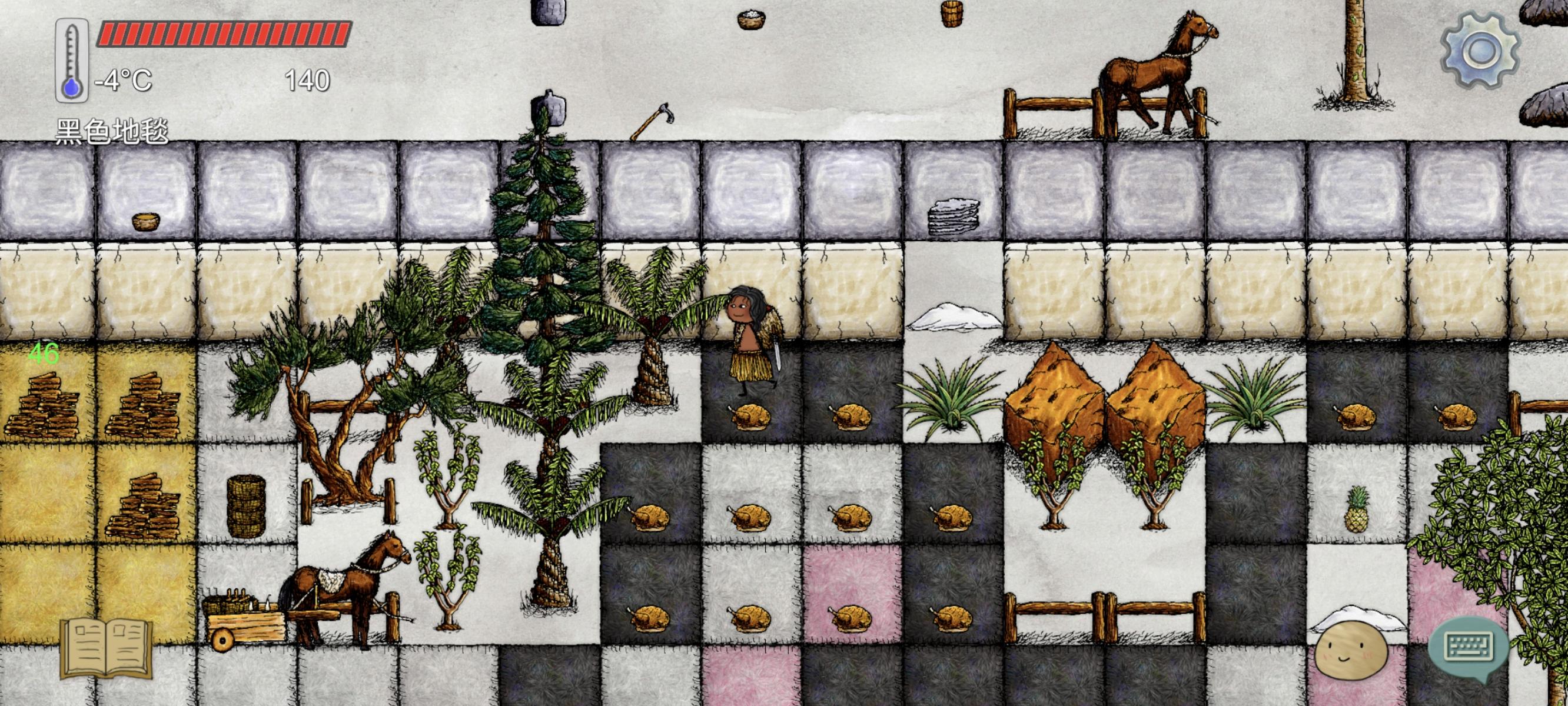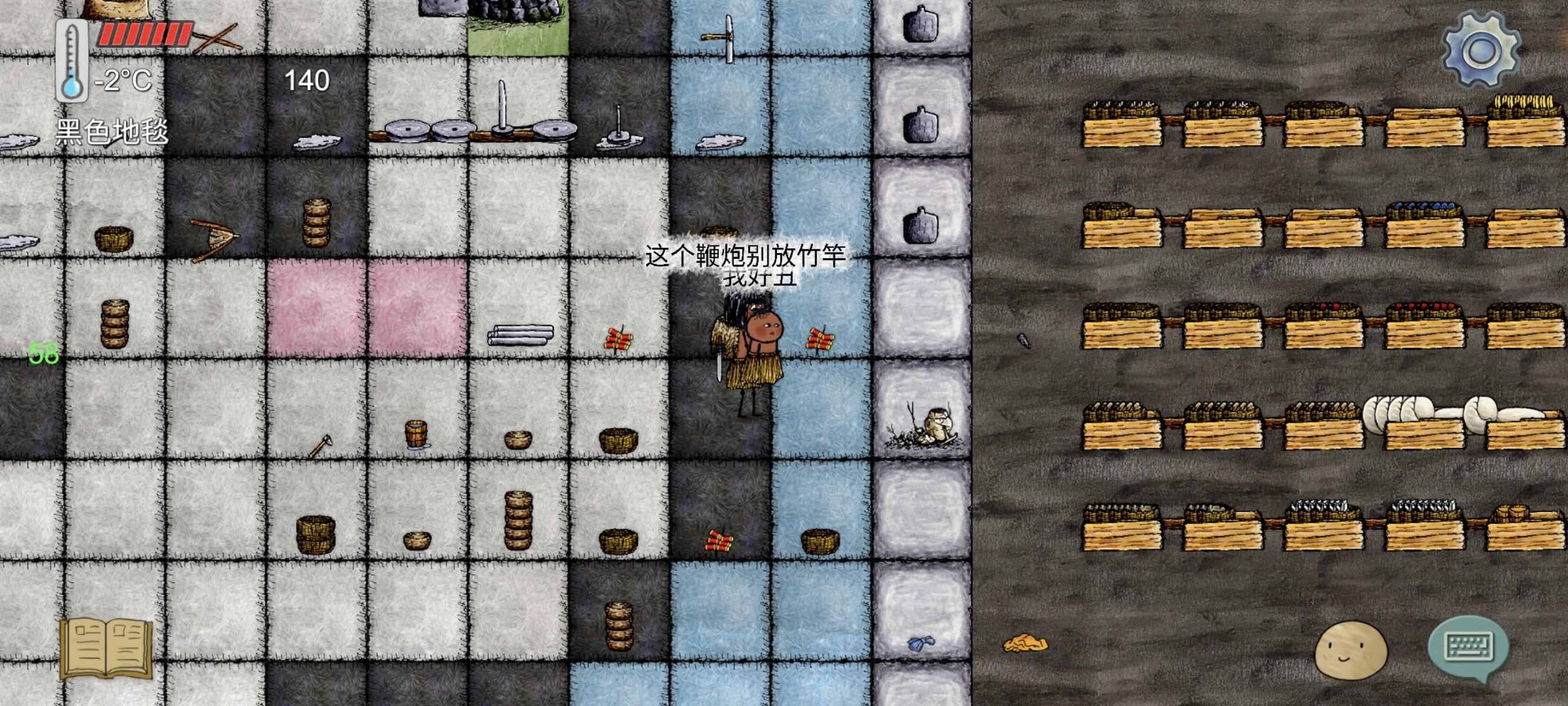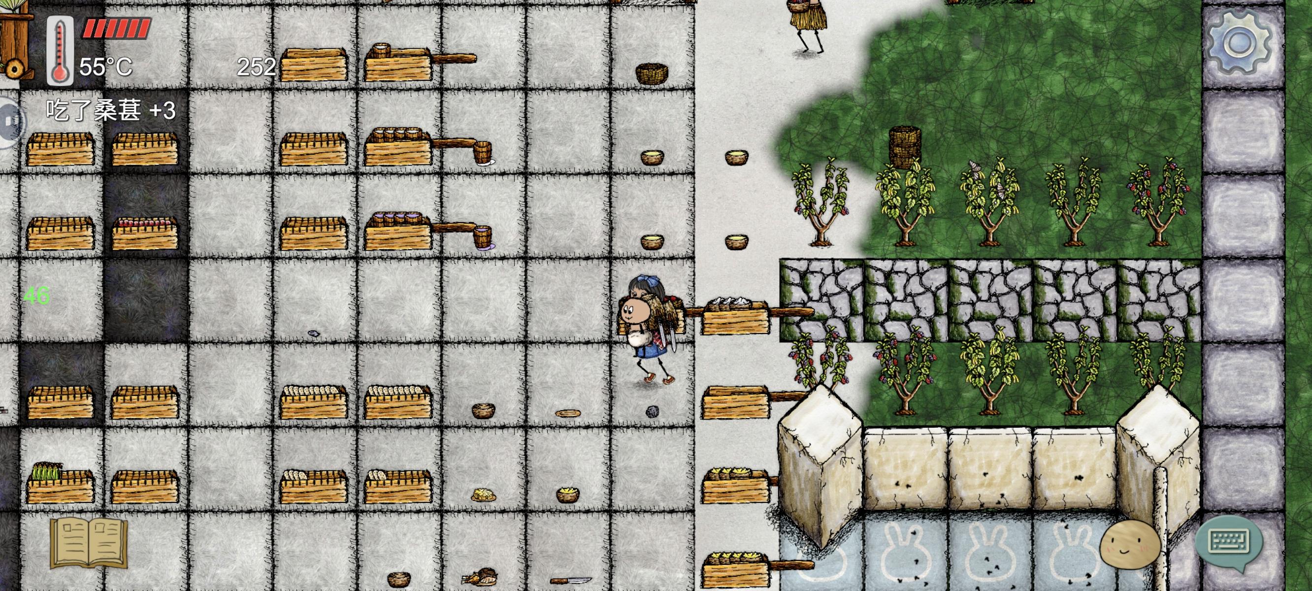 对这个游戏闻名已久的首次尝试,首先教程就过了差不多半个小时吧,然后就是出生在荒野很容易死,偶然的机会进了清家族,清一色大大真的好赞,我首先想做弓(以为打动物都用弓),大大教我的过程中我自己饿死了(小孩真的饿的好快),我还可惜了一下下,错过了这么好的大大。再开了两回短暂的生命,机缘巧合之下又回到了这个家族,大大继续教我,我学会了做弓,知道了兔子是用陷阱抓,还学了怎么锄地种植物浇水,连我砍引木材堆一起