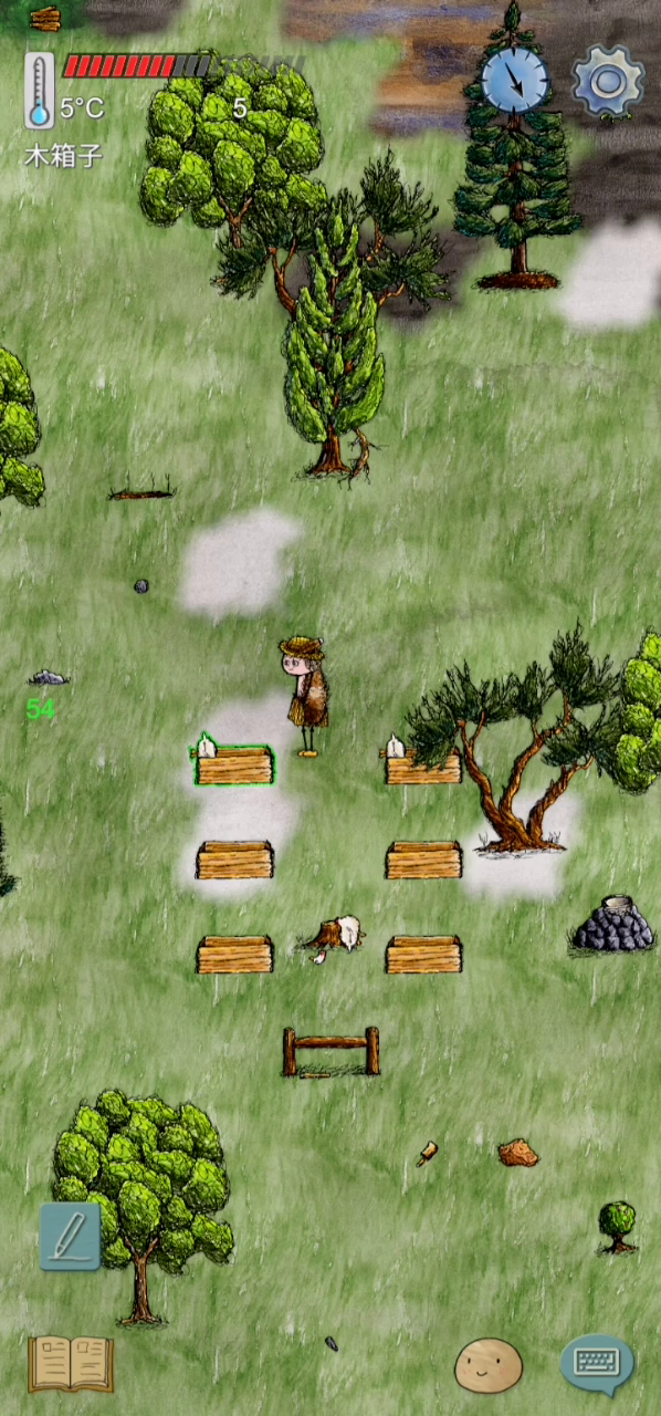 还好这片枯树没砍,位置长得挺好,现在灯笼都挂上了,接下来铺条路,做做装饰。
