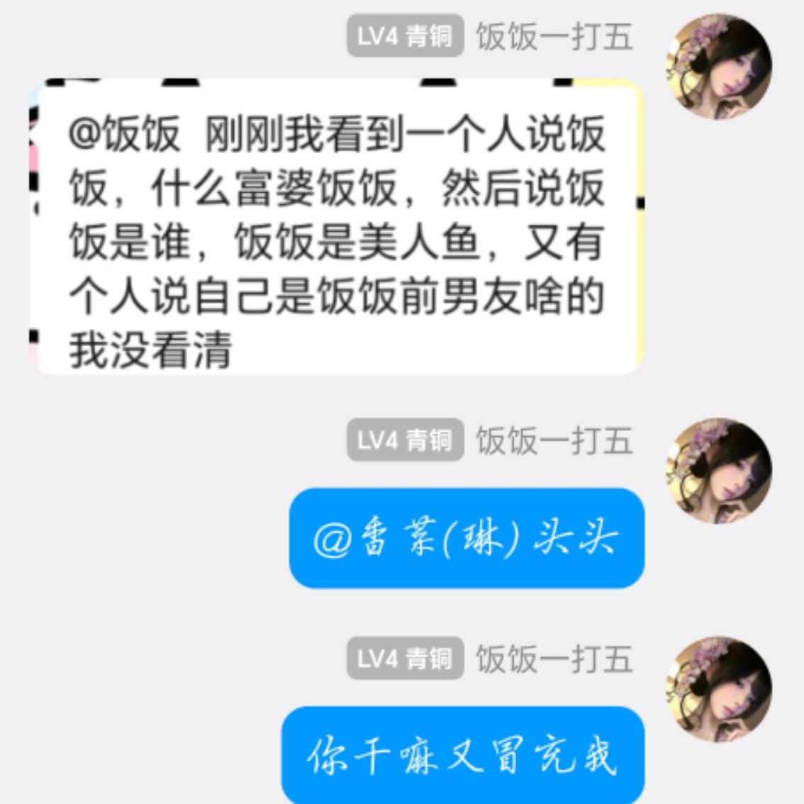 估计是小孩子博存在感吧,冒充我无所谓因为我不咋在新手服氪金,我也只是普通玩家,但是为什么要冒充我室友大川和无为,他们是无辜的,而且他们也不咋上线,别给他们招黑行吗?真的很猎奇啊小朋友,现实很缺爱吗干嘛网络上冒充别人,一会在传五冒充传六的龙傲天,一会冒充桑椹去酵酵那里挂机,一会冒充香菜和小章鱼,又一会冒充星星和jojo,你是逮着我们两个家族的人祸祸吗?你也知道不敢起那些大佬的名字不然别人分分钟搞你,