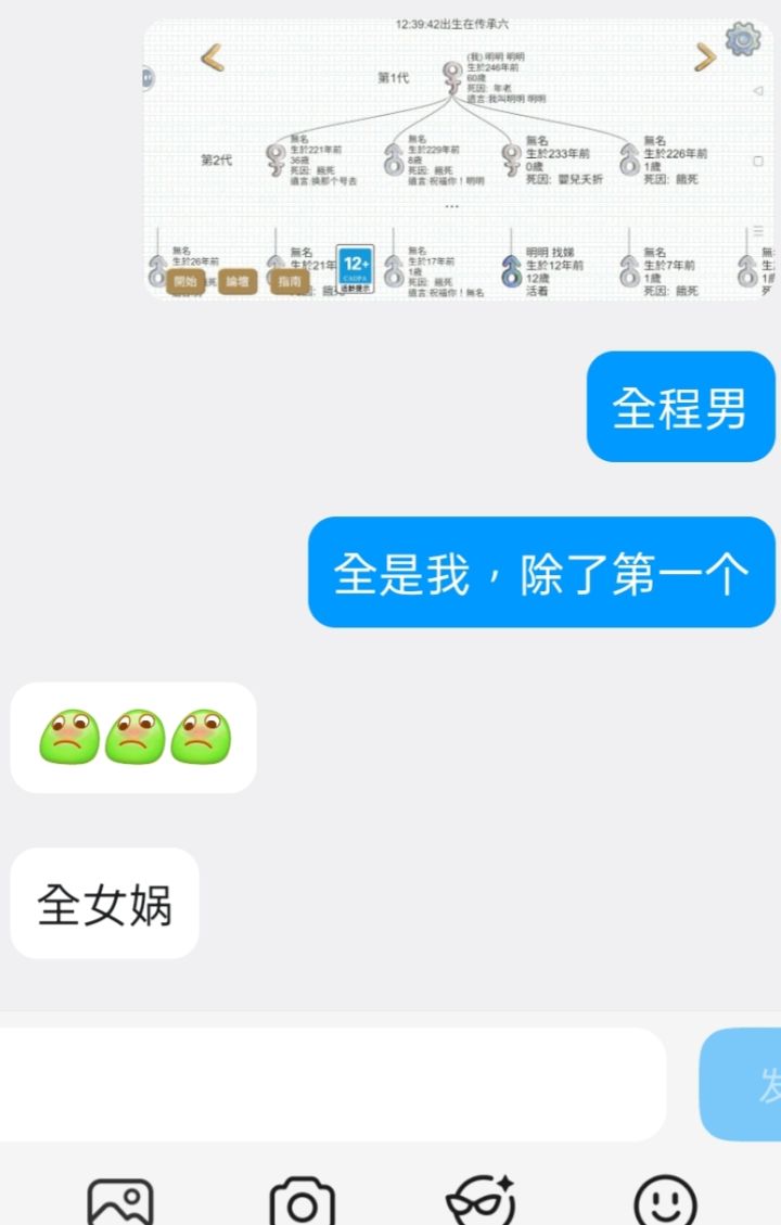今天刚重生弄完羊准备跑图就生了 也没抱过 中途忘记跑多少圈才能出圈出去看了一眼论坛,回来就看见他三岁还活着 然后我又回去找他的骨灰 骨灰也找到了 我就没想着再看我就开跑了 跑到结束出去一看发现他还活着 以为是游戏卡了,退出重进还是活着 别搞我啊 其他没抱的也都死了