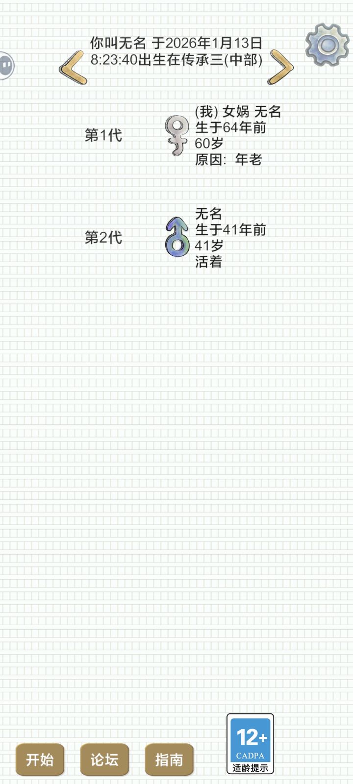 中午吃饭时候随手投了一把,在我小时候人很多的后面吃着吃着看了一下屏幕发现就我女儿一个能生了,直到33还一直生男孩,我当时真的以为完了幸好我的孙子小秃(图二)很乘,不挂机还一直干活,在我老死了以后还一直喂我女儿,后面我看传下来了今天边吃饭边救了一个家族😎