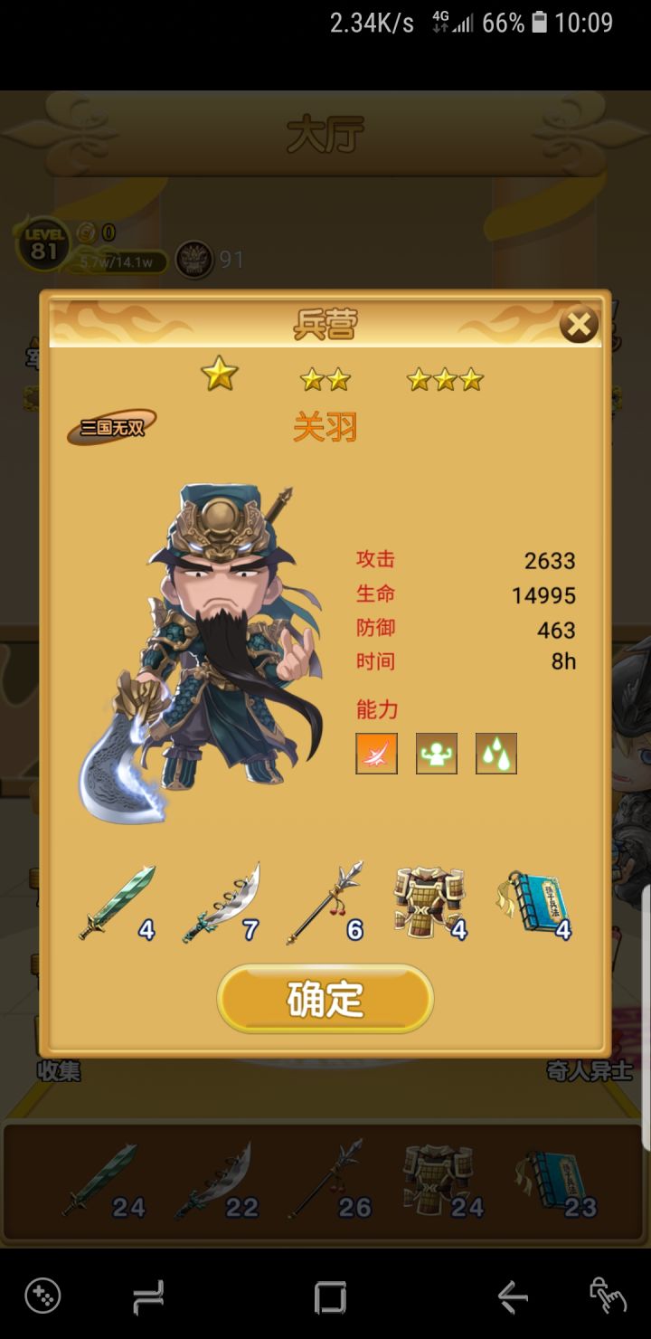 吐了,真的太看脸了。诸葛亮抽了3,40次都不出。然后就是高闪避+高回血打了10分钟都过不去。一把10分钟,我凌统都出现一次8连击,一次7连击都还没过。懒得再开贴了,不准备玩了。刚刚又打了10多分钟辛寇英,好不容易打到4万出头,结果刷刷刷的闪避,回血又要满了。拜拜了