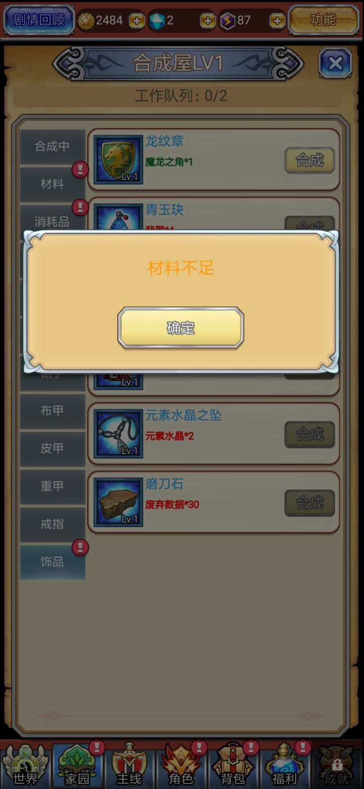 bug,已有魔龙之角,合成龙纹章的时候,却提示材料不足。