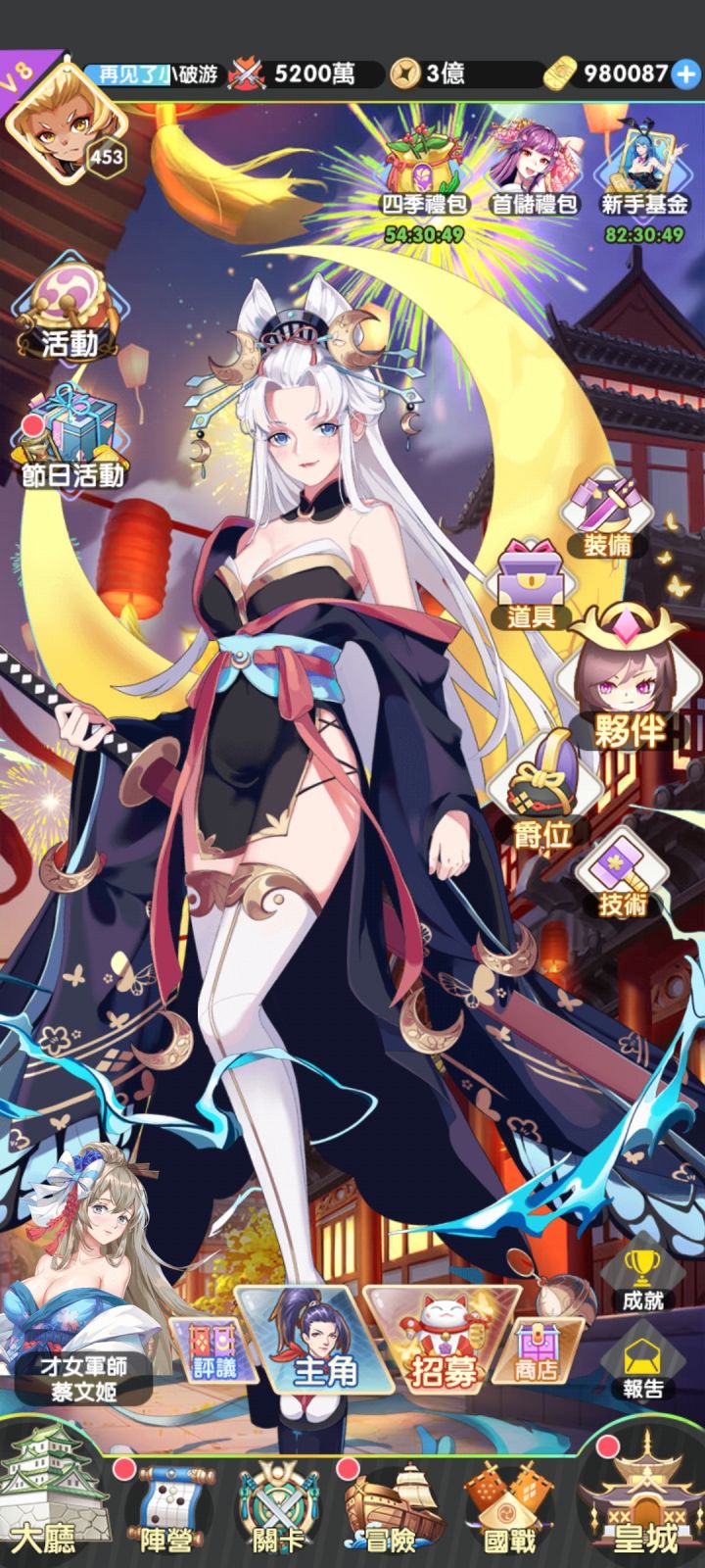 礼包码奉上:mr666,mr999,mn666,mn999,fz888,开服狂欢,贴吧小宝藏,2020ye07mu,guoqing99,千里共婵娟,欢度国庆兑换方式:游戏主页→左上角姓名→系统设置→点击礼包兑换→输入礼包码即可兑换奖励活动界面拉到最后推广好礼处输入邀请码 tGvCigAx前期资源很少,如果0氪直接看下面0氪阵容资源很紧缺,三尾(晋升满),天狗,主角,华佗 ,不要冲动给啥用