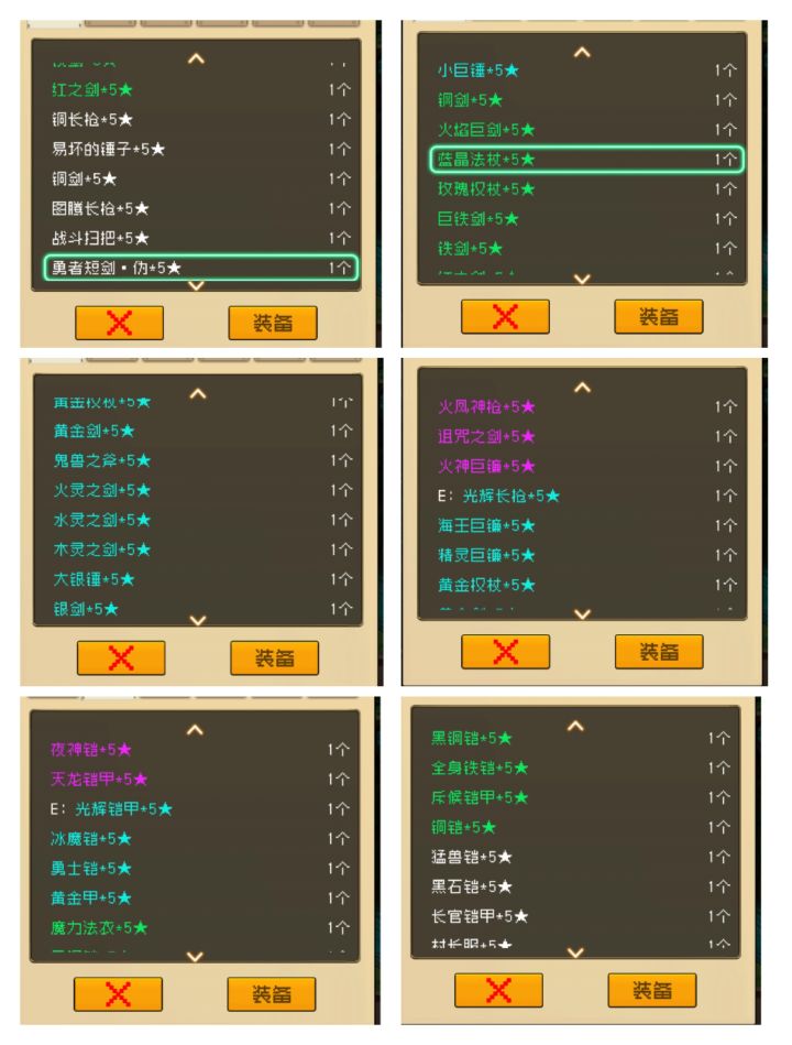 各种属性武器(杖,剑,镰)全做*5星