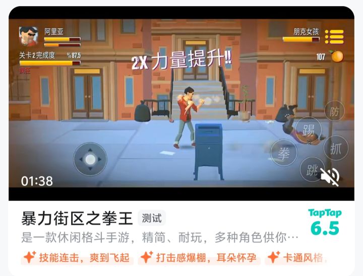 完全免费!无内购无广告高评分,超爽快街区格斗游戏