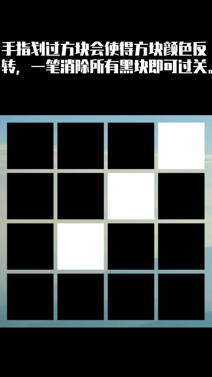 《一笔消》结合 “一笔画”和 “消除” ,将两者合为一体,只需要一笔消除所有黑色方块即可过关,需要注意的是当经过方块时 ,方块会“黑变白,白变黑”,这就需要考验你的路径规划能力啦,有时候有些白色方块可以作为一笔消除黑色方块的转换点奥,快来体验这让人欲罢不能的游戏吧!(PS:这个游戏创意可是多少个不眠的夜晚想出来的哟,相信到关卡后面的难度会让你的大脑疯狂运转,直呼过瘾呀!)你不玩,我不玩,游戏何