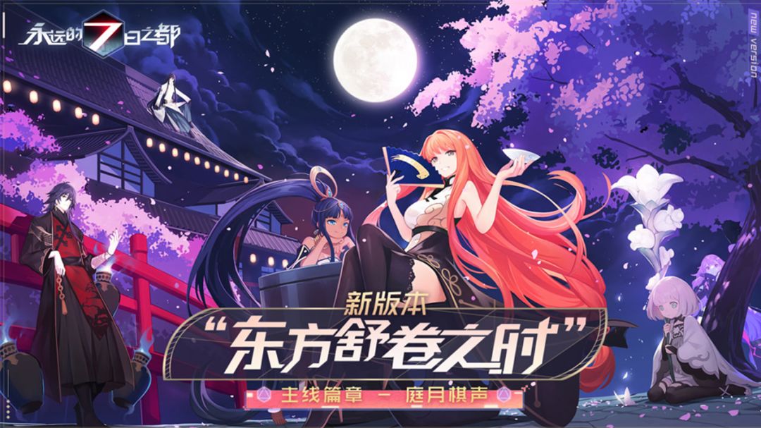 《永远的7日之都》新版本——“东方舒卷之时”即将开启。围绕此次版本,官博首先公布了一张悬念KV:层叠的浓云之中,一轮明月当空。静谧安宁的庭院中,石桌倾斜,星棋纷落。夜风穿花越枝而过,曳下一地樱色。不远处的中式楼阁燃起一排明笼夜灯,与月华一同,点缀了浓深的夜色。 视频地址:https://v.youku.com/v_show/id_XMzgxNDYzNTIyNA==.html?spm=a2hzp.8