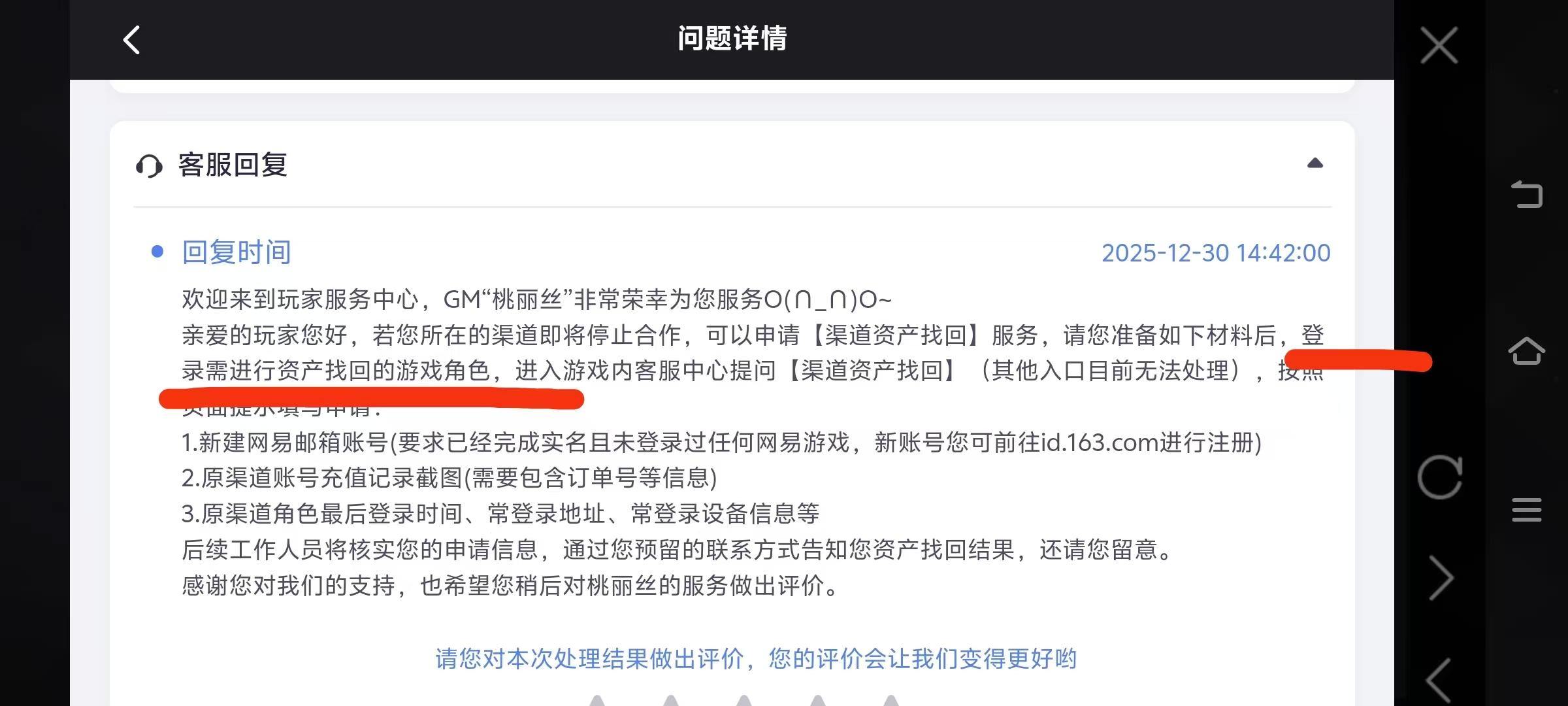 先前在官服号上询问客服转移事项,客服回复需要在被转移的账号(渠道服账号)上申请操作,可我的渠道服账号内没有客服中心该咋办呀