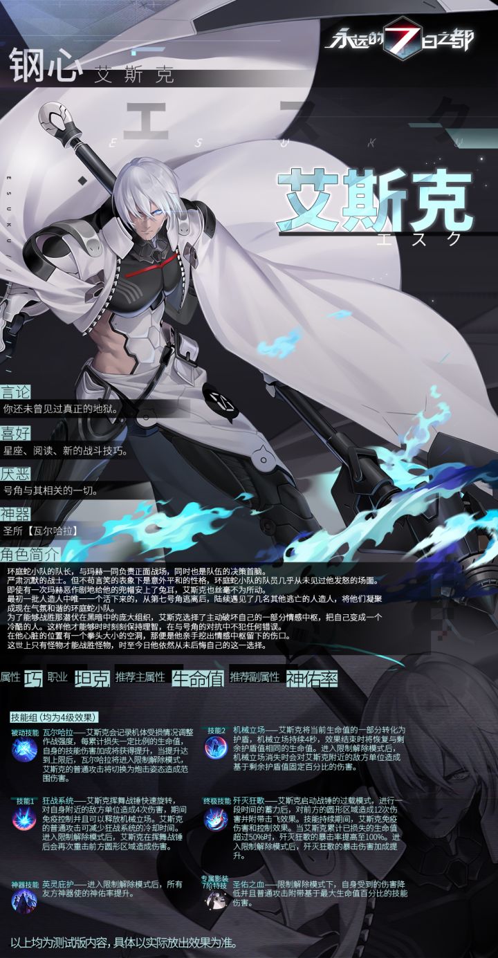 指挥使们晚上好~今天7都督将为大家带来新神器使艾斯克、阿莱克西亚的情报资料,他们的到来会给交界都市带来什么变化呢?快和7都督一起来看看吧~「艾斯克」环庭蛇小队的队长,队伍的决策首脑。严肃沉默的战士。但不苟言笑的表象下是意外平和的性格,环庭蛇小队的队员几乎从未见过他发怒的场面。即使有一次玛赫恶作剧地给他的兜帽安上了兔耳,艾斯克也丝毫不为所动。最初一批人造人中唯一一个活下来的,从第七号角逃离后