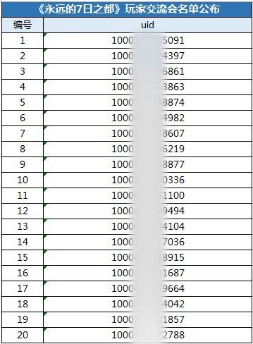 《永远的7日之都》玩家交流会将于12月16日在广州举办,在上周发起的招募活动中,许多指挥使踊跃报名参加交流会,不少指挥使还对游戏给出了好评与建议,施工队也十分期待指挥使的到来,以下是受到施工队邀请的指挥使名单: