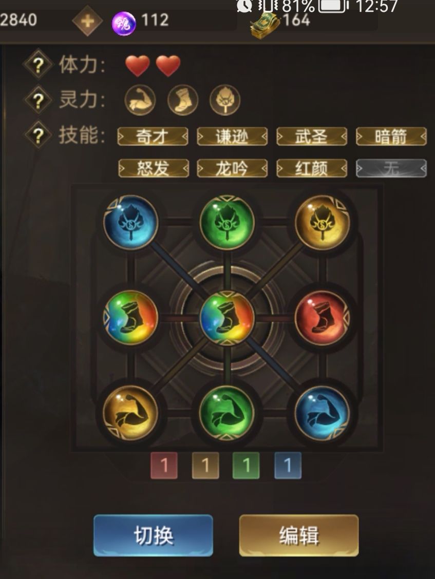 现版本部将系统已开放。 大家都知道激活左幽技能的两个条件 1.一条直线上的相同技能点数之和达到10或以上; 2.满足色链要求(每个技能下面就会有一个或者多个带颜色的数字)。 正常情况白珠(红黄蓝绿)的点数为+1~+4紫珠点数为+3~+9下文用白珠属性用自(XX)”代替、紫珠用“紫(AXBX) 代替。 首先我们要知道的是技能珠分为三个档次(这个游戏中是没有介绍的) 1白(1~2)/紫(3~A5