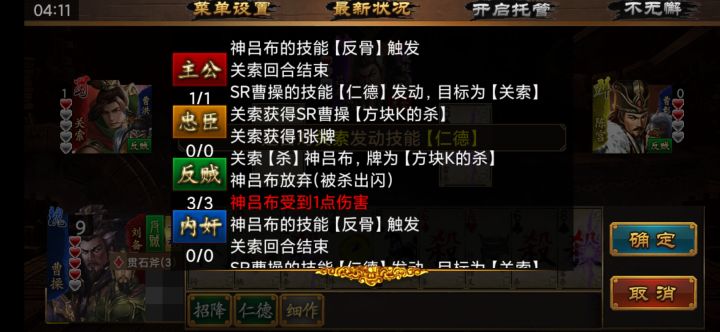 损失3-4点体力最好,当主公还是很好控制血量的,第二轮基本就可以乱死了 杀死忠臣也不用丢牌