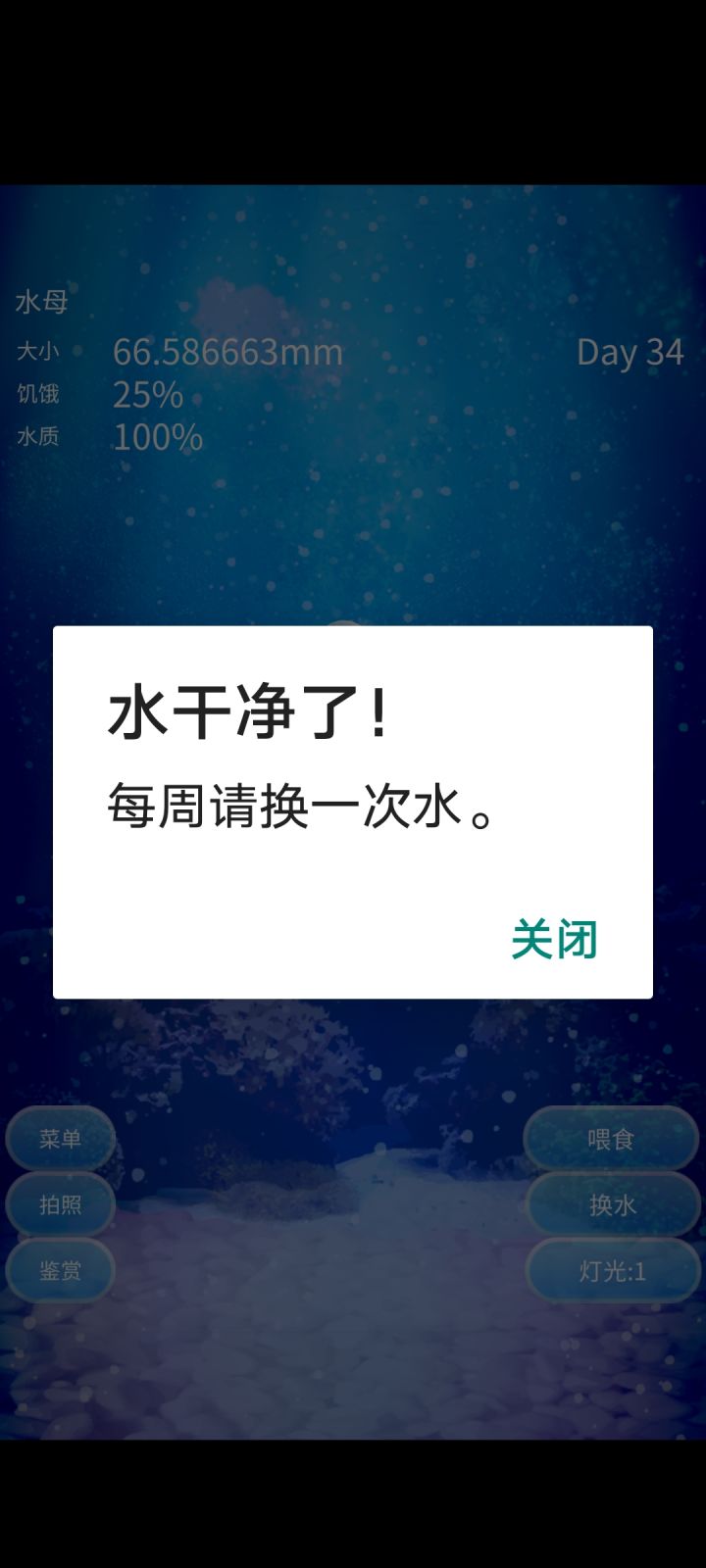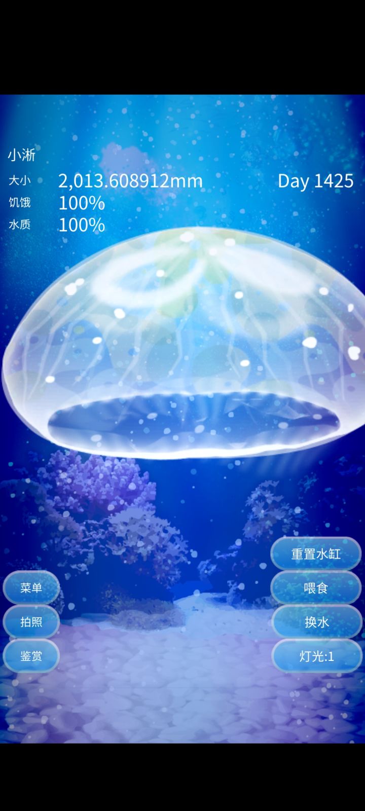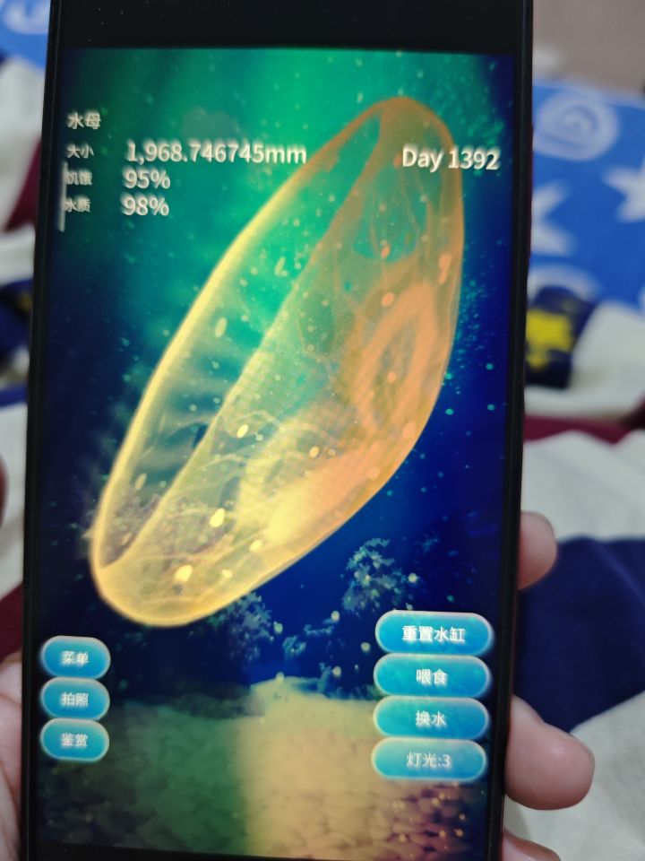但时间过了又过,我又喜欢上了这种感觉,下班回家拿上平板,把电子小猫喂喂,又把旅行青蛙的行李准备好,让它去替我看这个世界,再者就是我的小水母,无聊,还是觉得无聊,像我的生活一样,每天在鱼缸里游一游,再装一装缸壁,它又何尝不是另一个我呢?