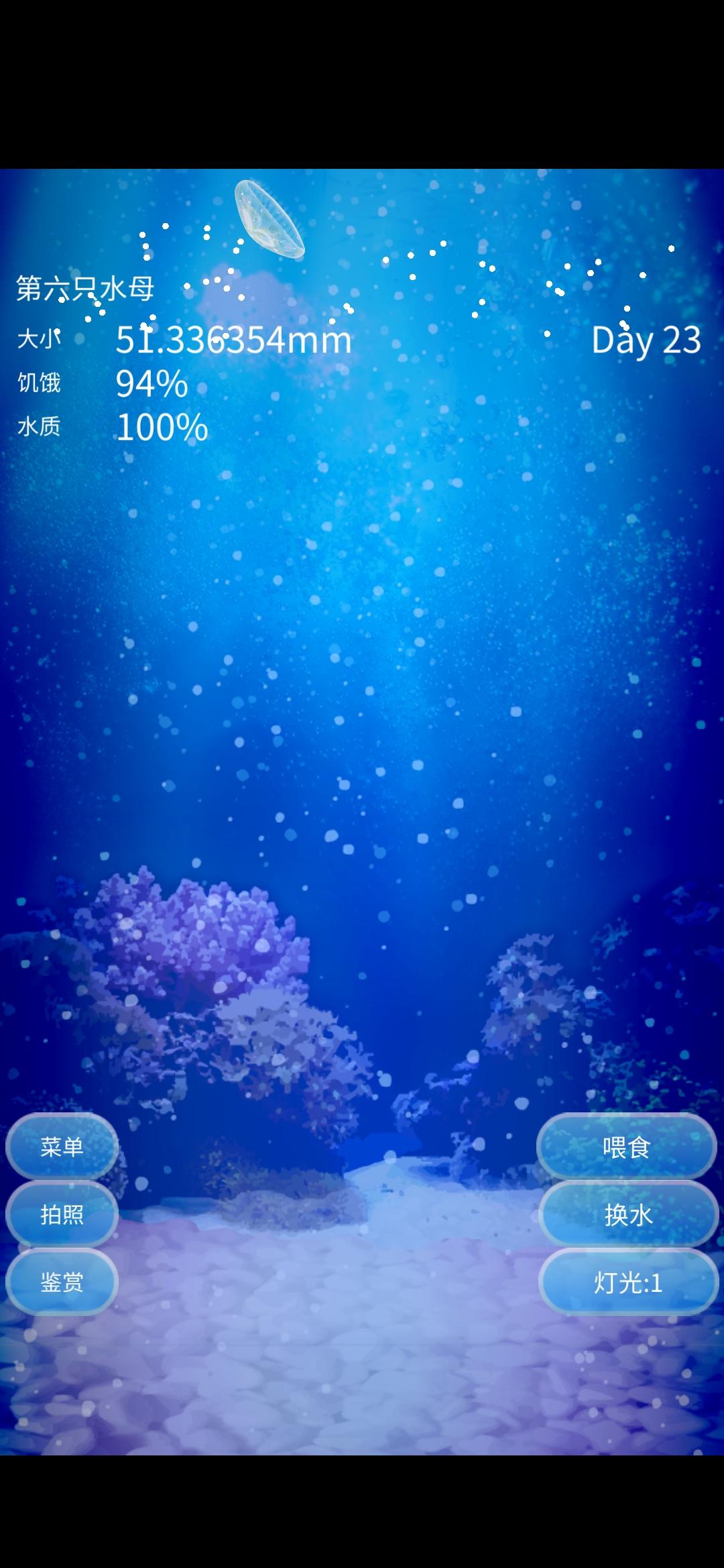 自从一年前手机更新了系统再也打不开,一直舍不得把软件删掉留在手机里做为我养了这么久的小水母的纪念,没想到今天突发奇想点开了这个软件!竟然打开了!呜呜呜,而且只有水质变为0%,还好没有饿嘎了!小哈,接下来的日子也请一直陪伴我!