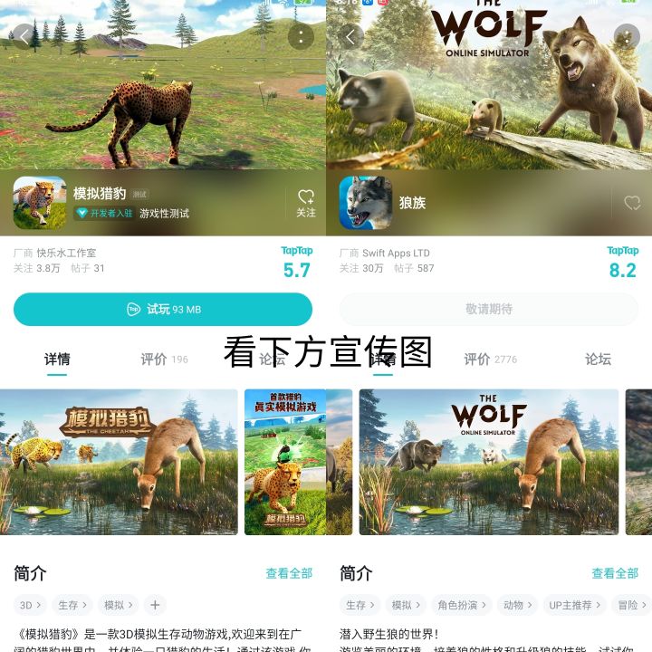 Hi!期待已久的猎豹模拟生存类手游《模拟猎豹》即将7月初登陆TapTap啦~你不仅可以探索奇妙世界、还有精彩剧情,现在就为大家来简单分析下,这款游戏的玩法特点简要评析:1、在游戏中,你需要走进森林中成为一只猎豹来生活,你可以在这里探索广阔的猎豹世界,这里还生活着各式各样的动植物,你可以身临其境与之搏斗,厮杀,将其征服。体验在大自然中生存的艰难,更有趣的是在这里可以找到你的伙伴,与你一同生存,
