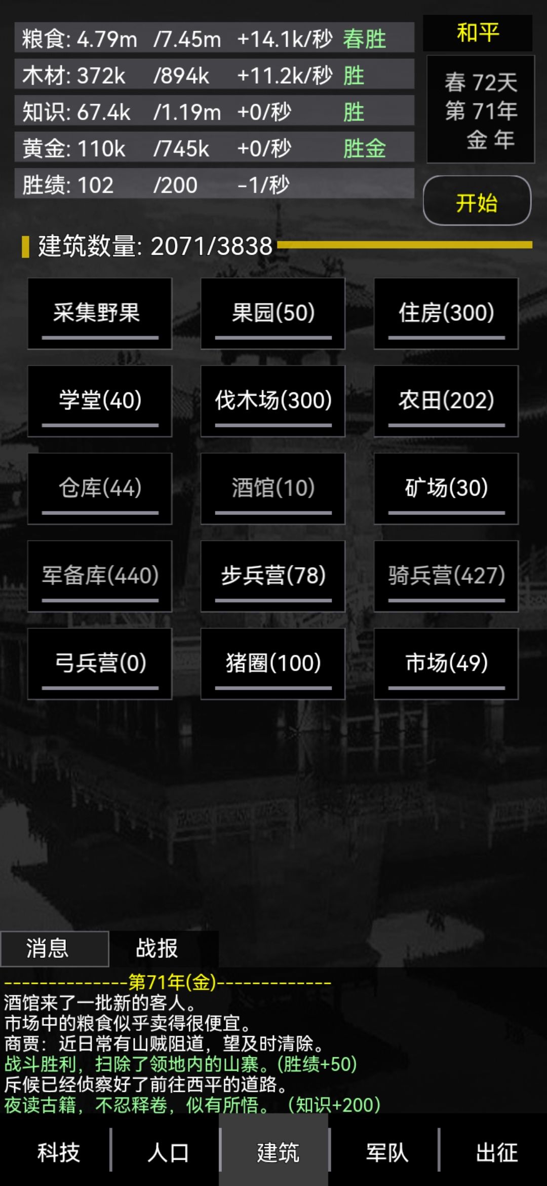 核心玩法:个人的玩法市场。嗯,很费劲,但好使。低买高卖,前期主要是卖粮食…粮食真的产量高…前期10个,中期20个,后期50个农民,粮食每月收入极大,卖起来很舒服…直接粮食卖完换黄金…换到的黄金买知识…对,我都没学者,知识都是用黄金买的。活用市场,基本不缺黄金,到后面几个城,我木材全换黄金,直接硬拼的。