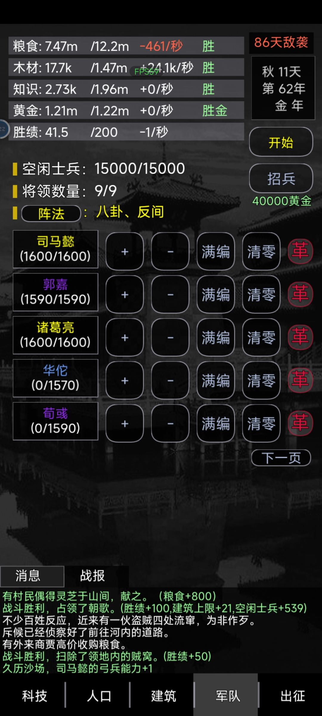 大后期:后期的城池基本要几队轮流上,硬磨死的。吴国先上,因为有首伤,接下来上魏国,因为回血35%,最后上蜀国。只要用市场不缺钱,无外乎等100天换季载继续卖钱。