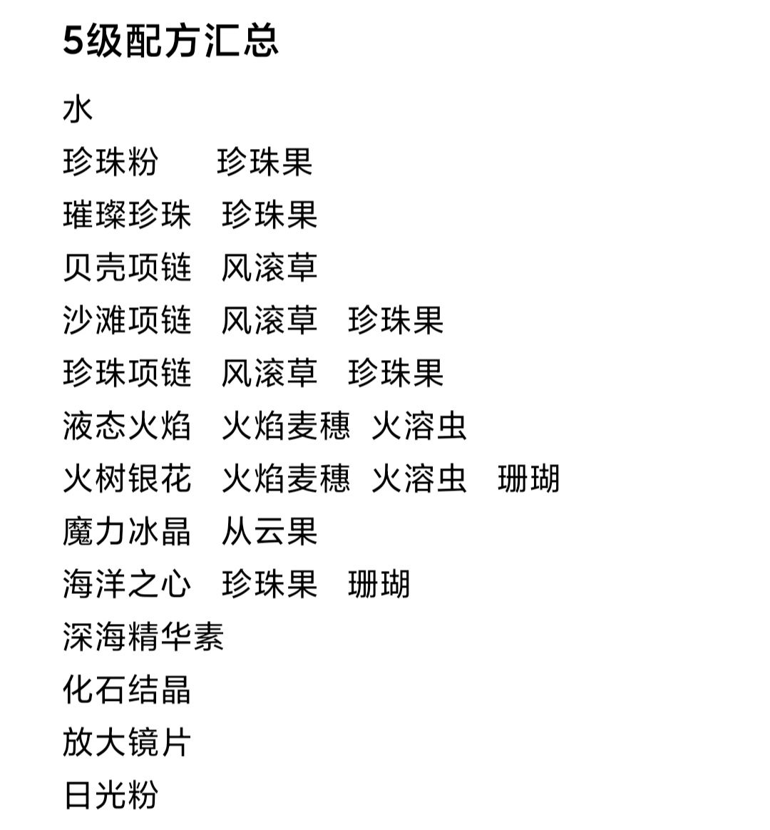 不全,少几个含日光石和火焰麦穗的配方。 顺便求一波好友:5991425
