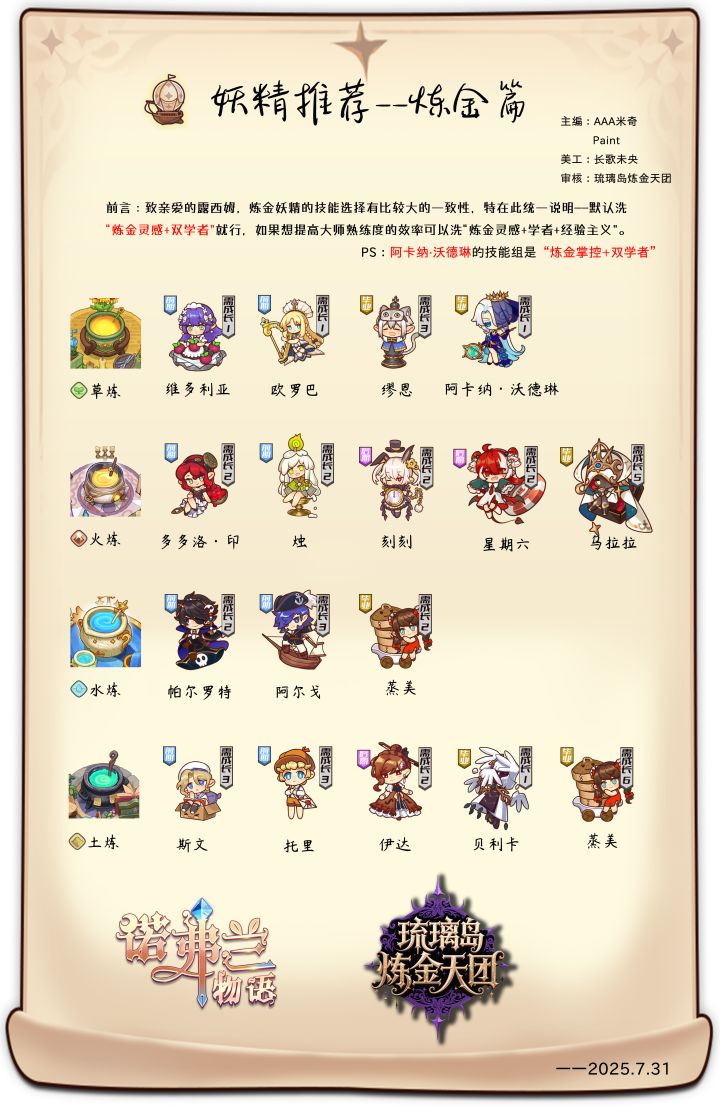 各位露西姆们,久等啦~经过琉璃岛炼金天团的不懈努力,最新的三大妖精推荐攻略完成啦!精心挑选了不重复的妖精组合,为大家献上简单易用的调配方案。PS:放大看更清晰哦!#诺弗兰物语