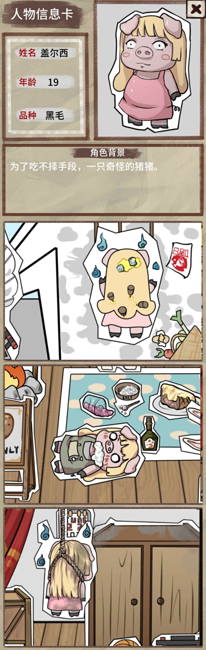 STAGE3.猪猪的烧烤纸片,带着一兜兜的菜品,狗狗把签签扔到了楼下,猪猪被冰柱砸晕了脑袋,烤肉顺便把冰冰也烤化了,兔兔不吃肉肉。