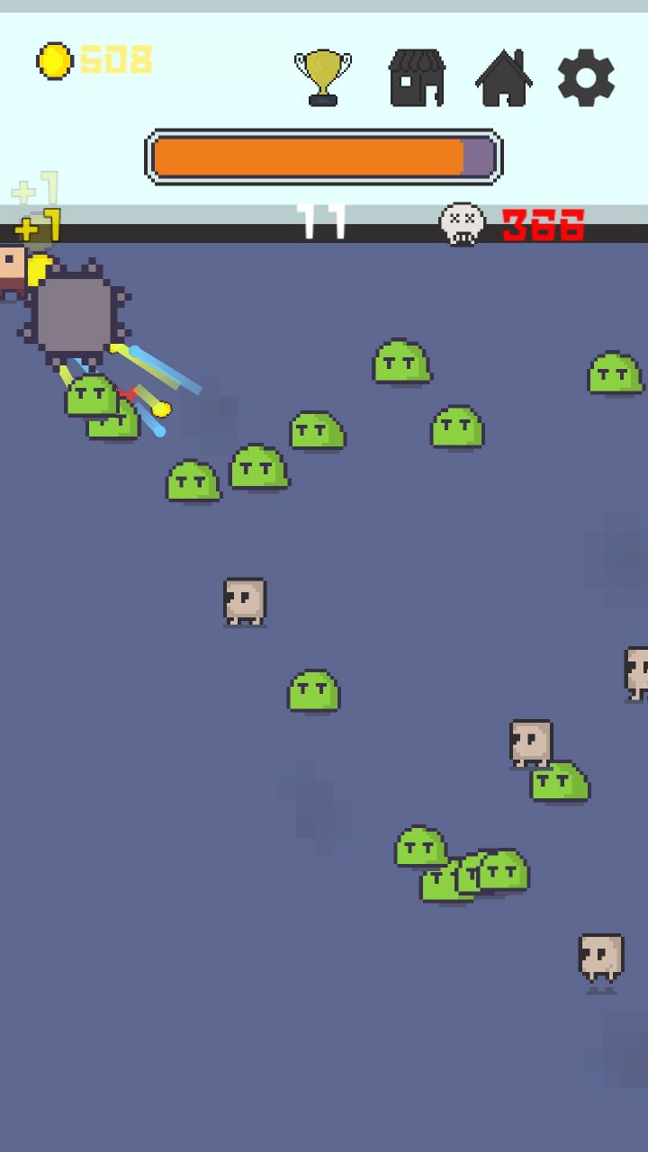 这游戏手残很难玩,不过有套路,前面躲角落升攻击,子弹,后面基本站底下来回躲,子弹弹射会杀的