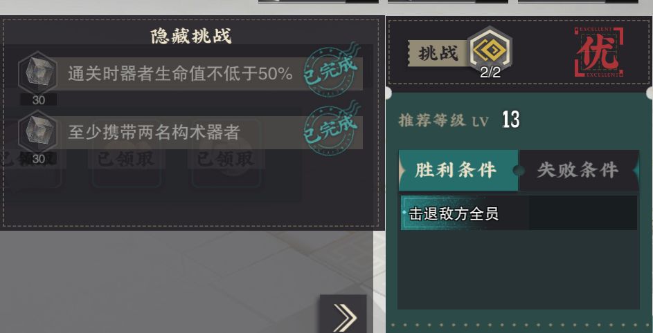 【考核选择】 考核功能中一共有着三支考核路线,由于主干路线是提升等级上限的关键,属于必选考核。 至于上支和下支考核之间该如何确定优先级呢?其实非常简单,只要按照解锁被动-职业属性提升-技能升级-其他属性提升的顺序即可。 器者入手时,很多被动都没解锁,通过考核解锁它们来保证技能机制完整自然是重中之重。当没有需要解锁的技能时,优先提升职业刚需属性收益更大。比如,轻锐职业优先解锁攻击属性加成考核等等。当