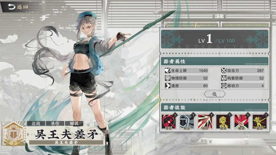 在物华弥新里,职业宿卫由于有着高生命值、高闪避率、护盾等属性,是生存力非常强的防卫者,不仅可以援护队友、吸引火力,还能够限制敌方移动。那么,宿卫器者究竟该如何养成呢?又有哪些平民宿卫值得培养呢?一起来看看! 平民宿卫推荐由于宿卫的职业技能有束缚和援护两类,就针对这两种各推荐几位器者。 1、 束缚宿卫:吴王夫差矛登录第二天就免费送,是宿卫金卡培养的不二人选。敌方进入束缚格攻击力减低,被动能提高自身格