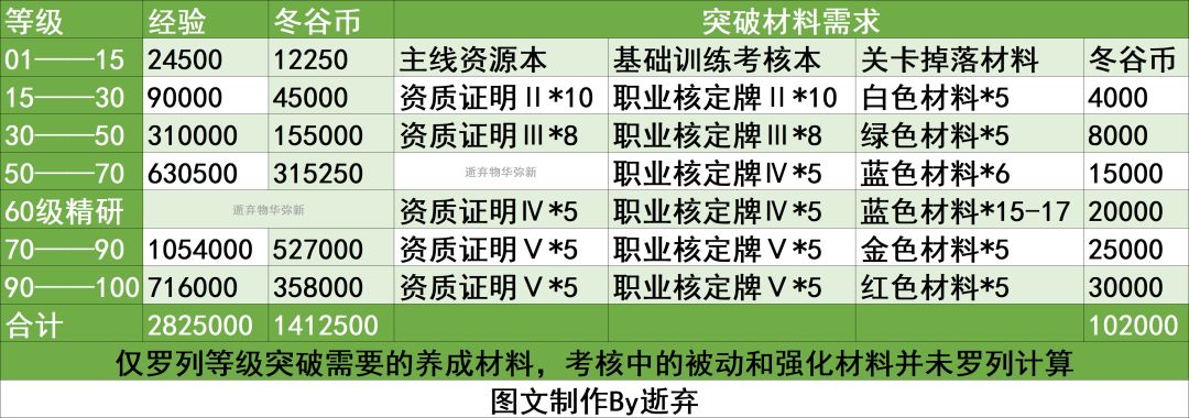 手搓了角色养成成本,结论放后面,前面是数据来源说明。附上一些性价比高的刷本路线,免得真有萌新框框一顿乱刷。求个点赞,万分感谢[表情_星星眼] ——————————分割线——————————— 1,经验总值是一建选择后根据消耗器者经验书反推得出,实际略高(因为有溢出),但是影响不大 2,考核材料因为你🌸是随机的,所以每个考核分别依据各自情况取平均数(共5-8,6-8,3-5,7-9,2-3几个档次)
