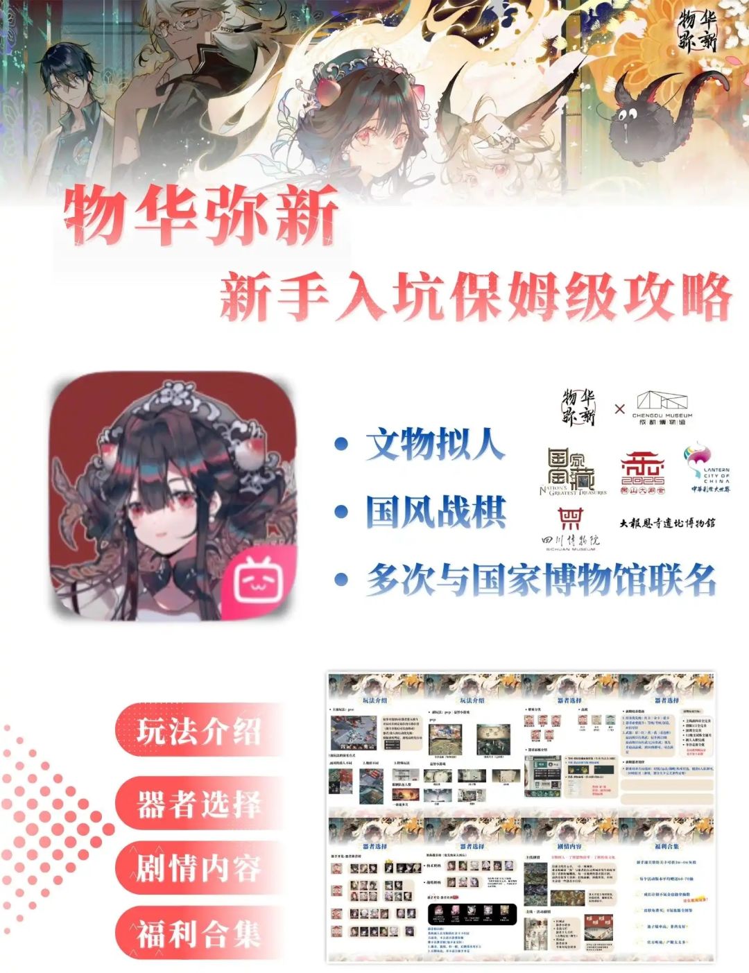 #物华弥新创作者激励计划 鄙人新出炉新人攻略,斗胆发贴请老哥们品鉴[表情_吃瓜] 有什么遗漏的须知/内容可以改进的地方 如果有深研美工的老哥,可以指点一下排版有什么不足/可改进的,虚心求教 感觉预备一周年会出重制版(虽然知道物华没什么新人了,但还是觉得有必要出一个[表情_流口水]) 如果华子能像绝对演绎那样莫名其妙火一下就好了………… 睡醒再来看评论区,欢迎大家大胆发言,刚好锻炼一下鄙